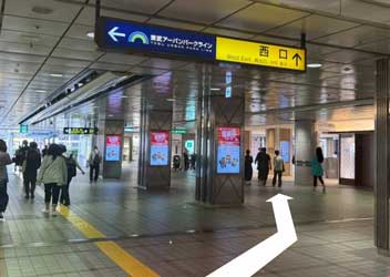 改札を出て左(西口側)に向かい、自由通路を斜め右に進みます。