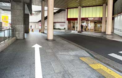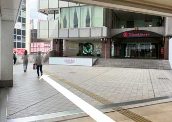 通路の先に高島屋本館が見えたら、建物左脇の階段を下ります。