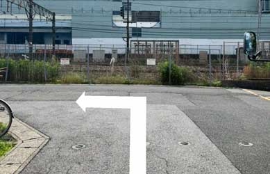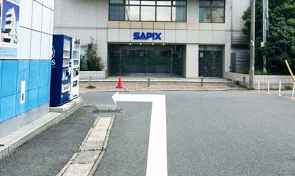 線路沿いに直進。進行方向の先にSAPIXのビルが見えます。
